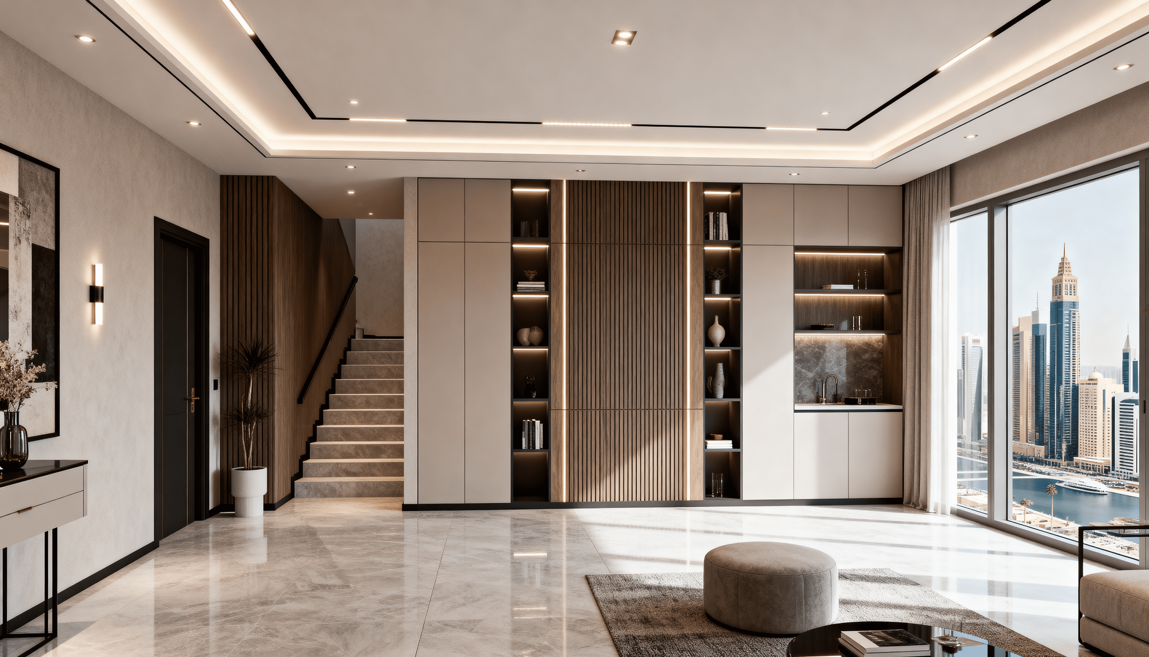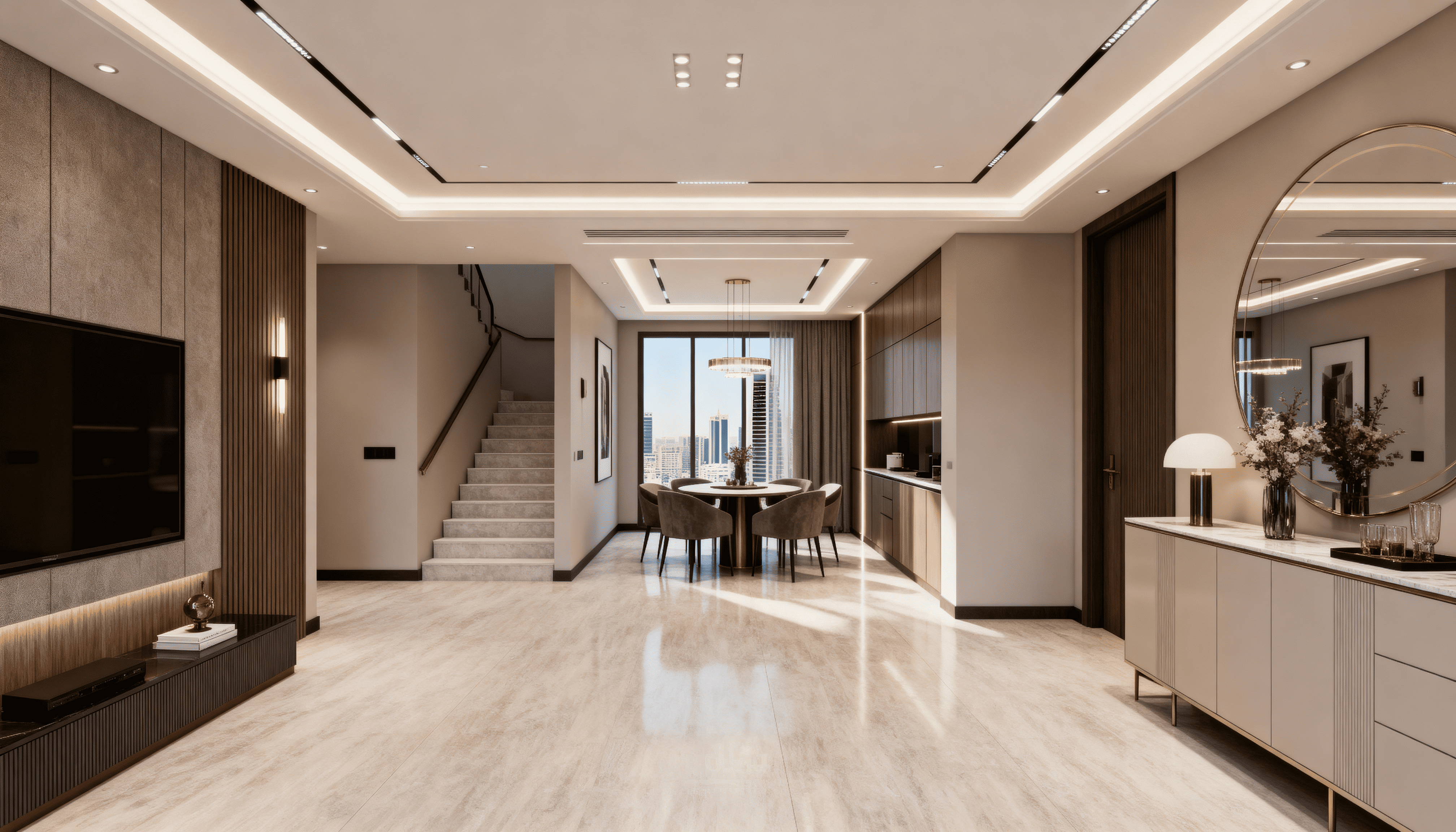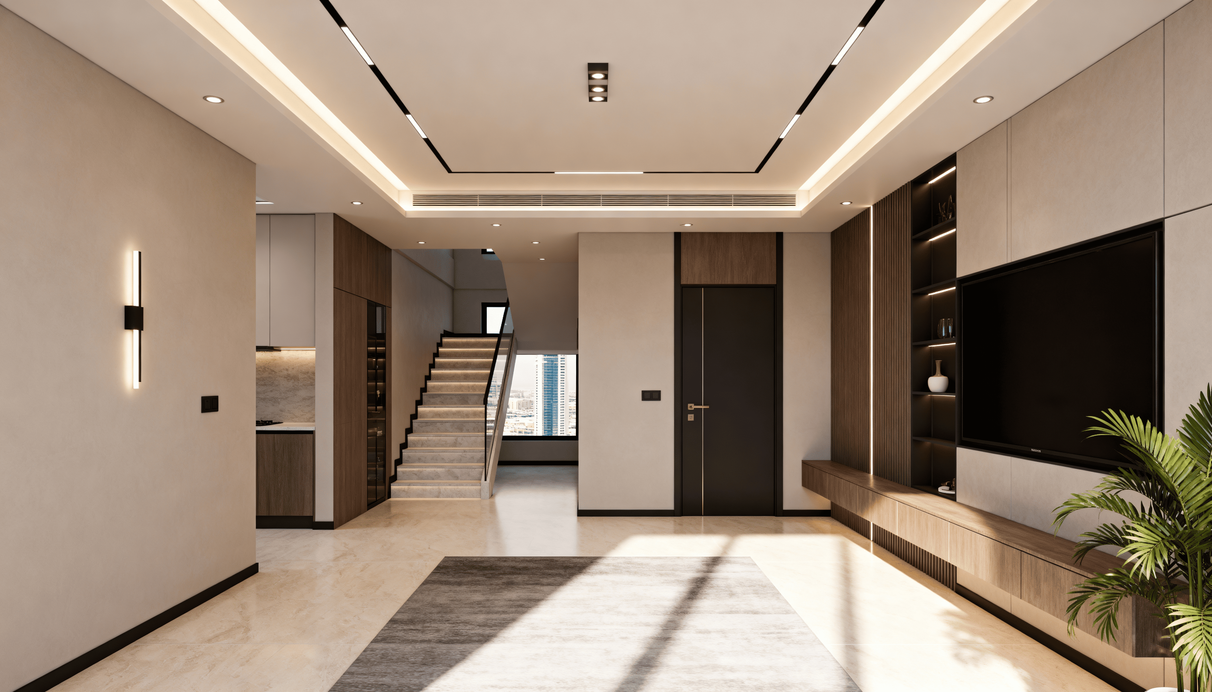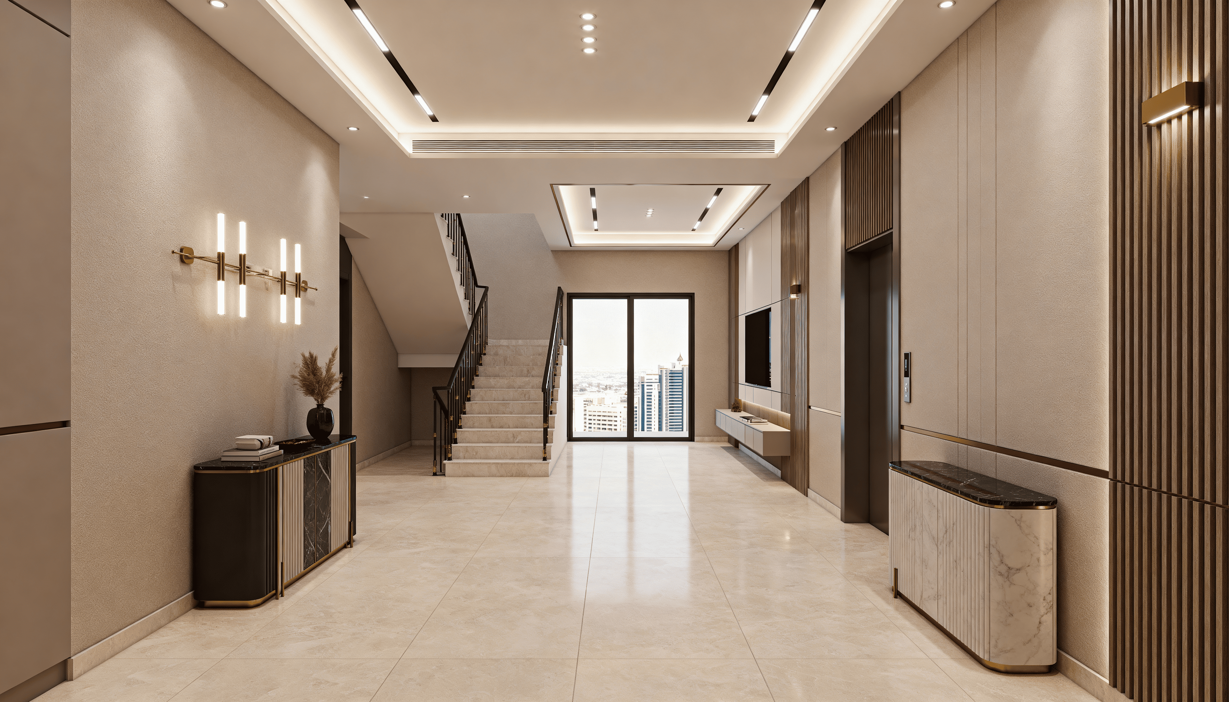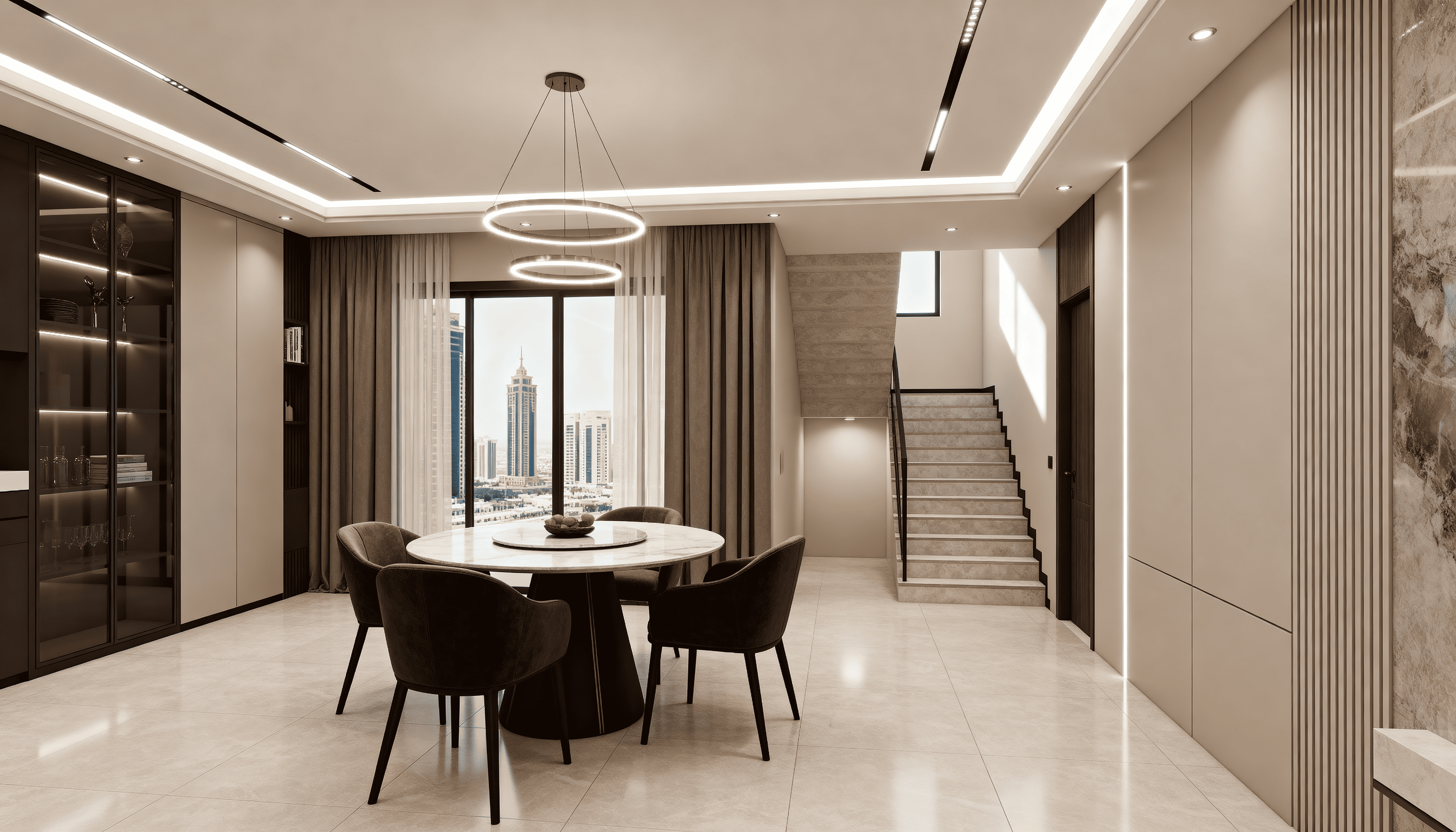 High-quality residential materials were used throughout the project, including sound-resistant gypsum systems, durable flooring, and energy-efficient lighting fixtures. All works were carried out in compliance with UAE residential and tower safety standards.