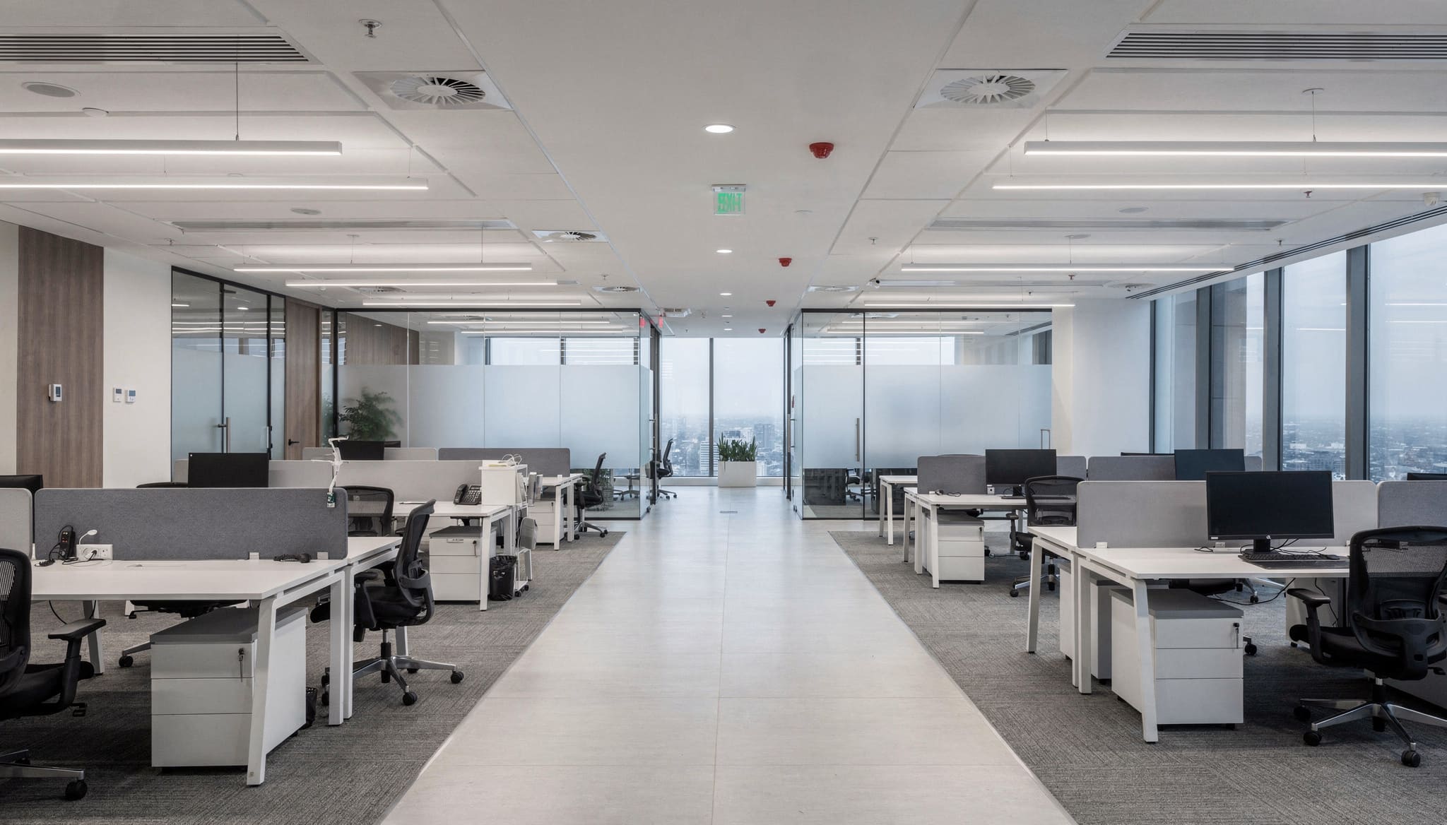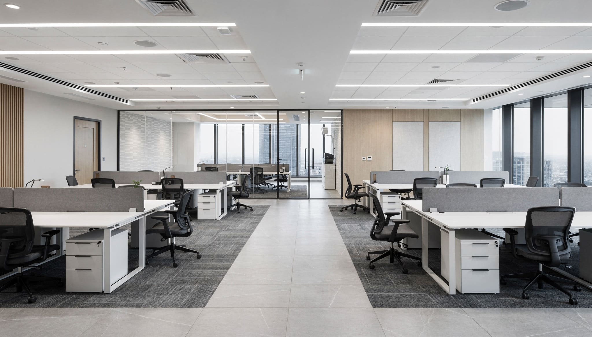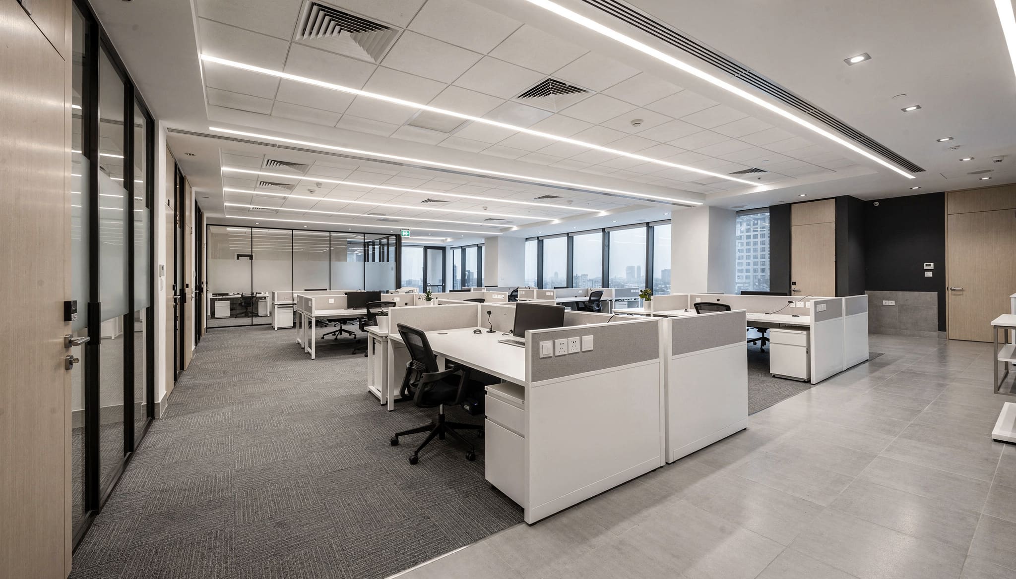 High-quality commercial-grade materials were used, including acoustic ceiling systems, durable flooring, and energy-efficient lighting solutions. All works complied with UAE commercial building and safety standards.
